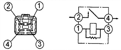 3. Csatlakoztasson akkumulátorfeszültséget a relé "1" - "3" kapcsaira, és ellenőrizze a vezetőképességet a "2" - "4" kivezetések között.